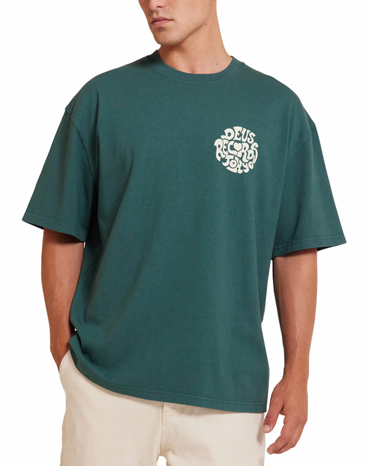 Deus propose un style décontracté, vintage et aventureux, mêlant influences moto, surf, et skate. Les collections incluent des t-shirts graphiques, sweats, vestes, casquettes et accessoires, souvent ornés du logo emblématique de la marque.
