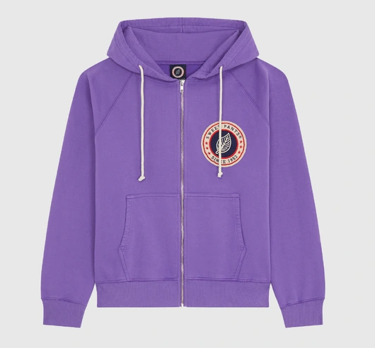 •Sweat Zipé à capuche en molleton •Coupe confort unisexe •Gros patch logo en feutrine tricolore au devant •Manches raglantes •Poche kangourou •Finitions avec bande bord-côte •Cordon de serrage tressé rond •100% Coton