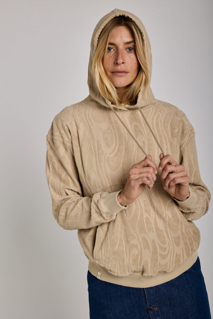 Sweat à capuche éponge jacquard 100% coton organique. Effet non gratté, Provenance matière Turquie.