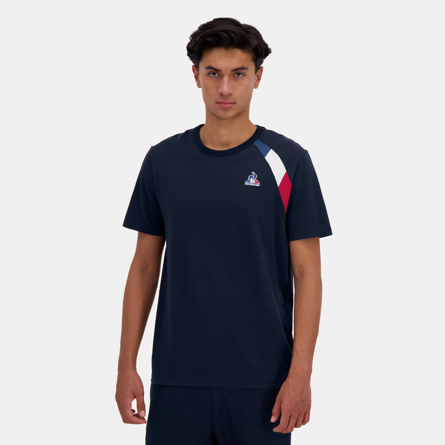 Découvrez ce t-shirt bleu foncé issu de la nouvelle collection Tricolore du Coq Sportif !